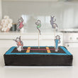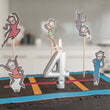 Bake, jump and celebrate with our trampoline cake. Perfect for trampoline parties and cheeky monkeys. Option to use the skewers provided for extra jumping height, or simply wedge the edible wafer monkeys into the cake.