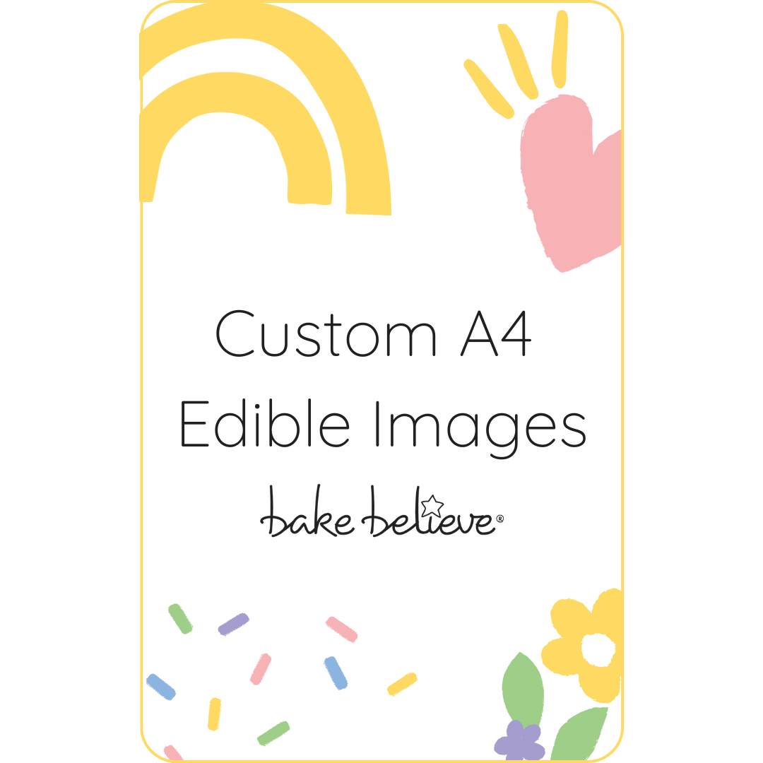 How to Order: Please add this item to your shopping cart and checkout to order a custom edible image printed on an A4 icing sheet (ideal for cakes) or an A4 Wafer Card Sheet (ideal for cupcakes). Once paid for please send us your image file by replying to your order confirmation email. Please make sure that your image is in a JPEG, PNG or PDF format. Please make sure that your image is clear and is 300dpi. If your image looks clear when blown up to fit your computer screen, it should be fine.