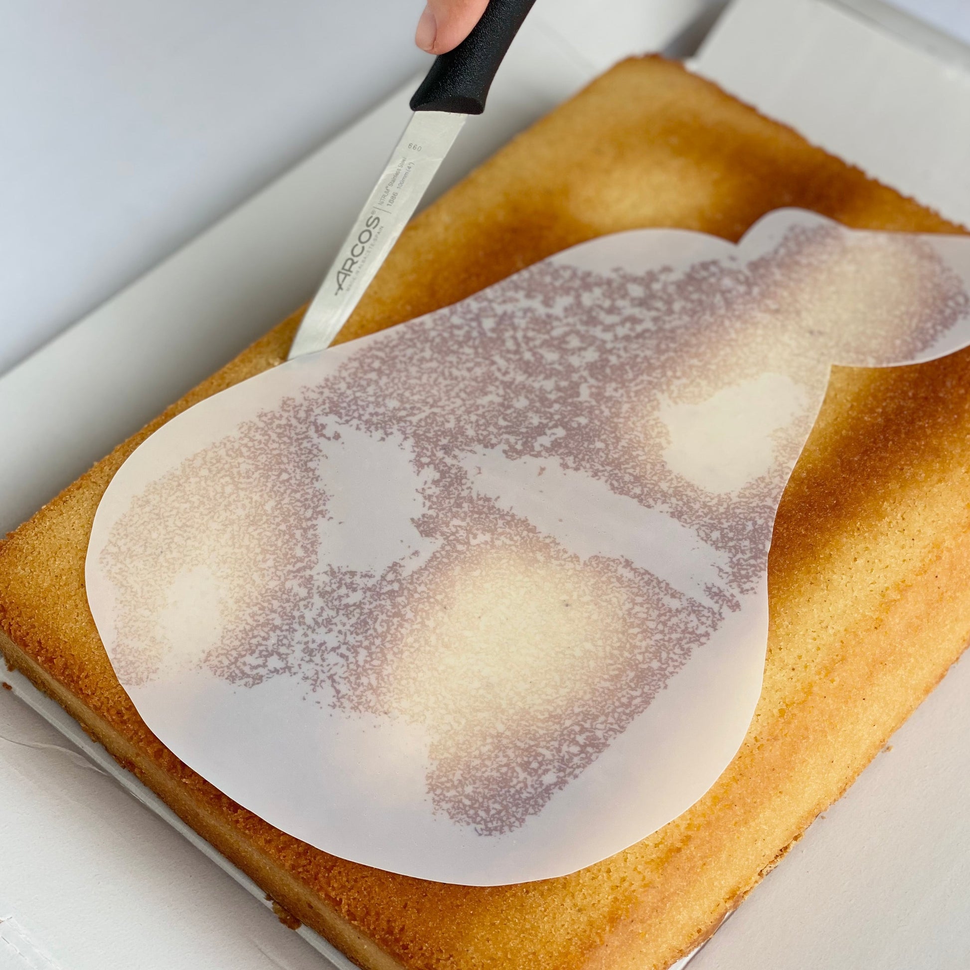 - Stencil to help shape the cake (scissors required)