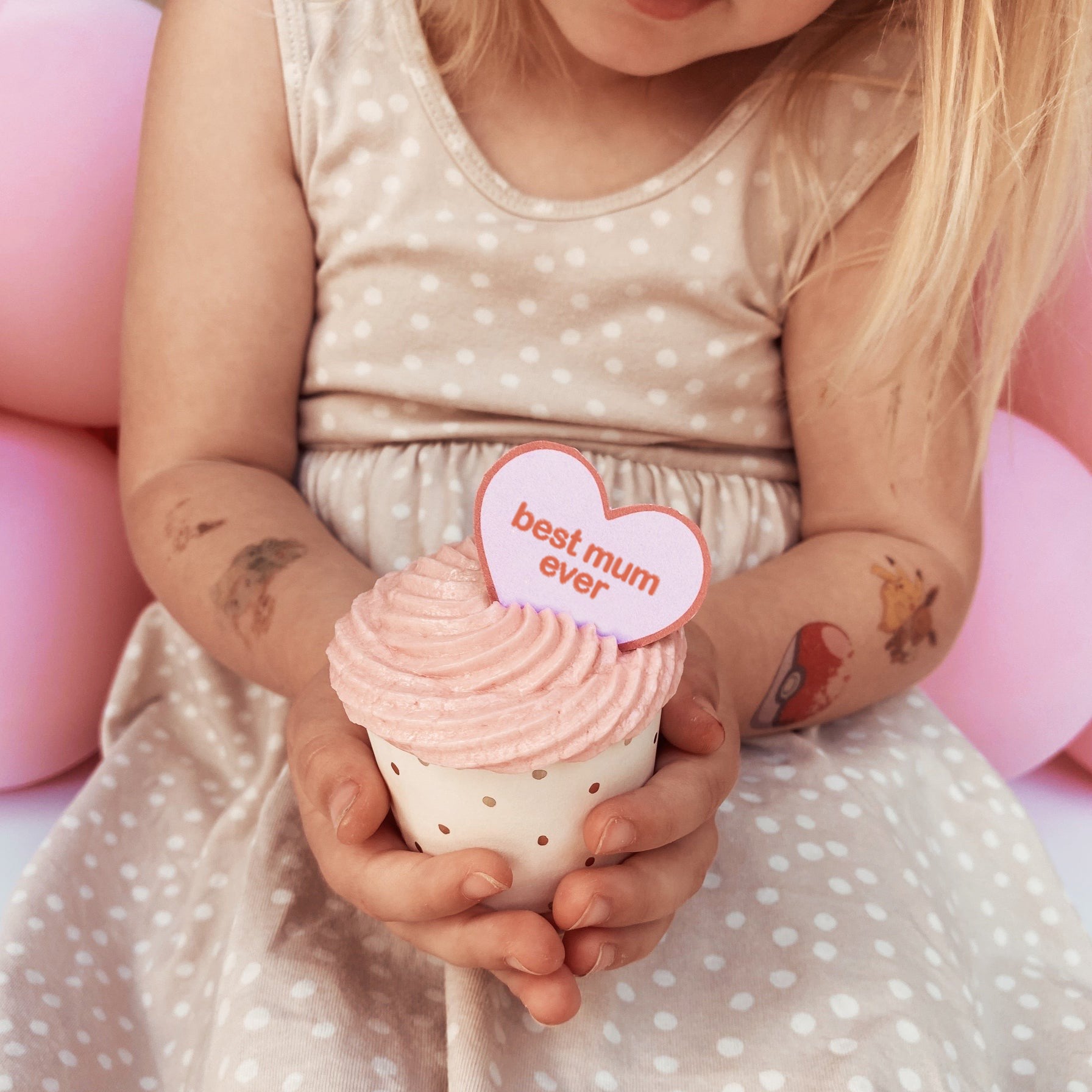 Tell mum you love them with these heart message cupcakes. Perfect to bake with your little loves, or for hubby to organise for you (yep, you deserve it!). Lots of fun messages to choose from (all included).